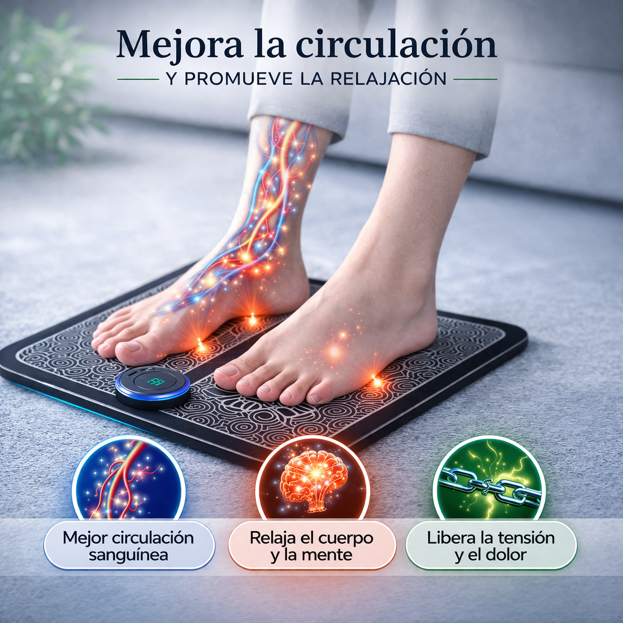 Descubre una nueva forma de cuidar tu bienestar con este innovador masajeador que actúa directamente sobre la causa del malestar. Gracias a sus impulsos eléctricos de baja frecuencia, estimula profundamente los músculos de pies y piernas, activando puntos clave para liberar la tensión acumulada y proporcionar un alivio real y duradero.
